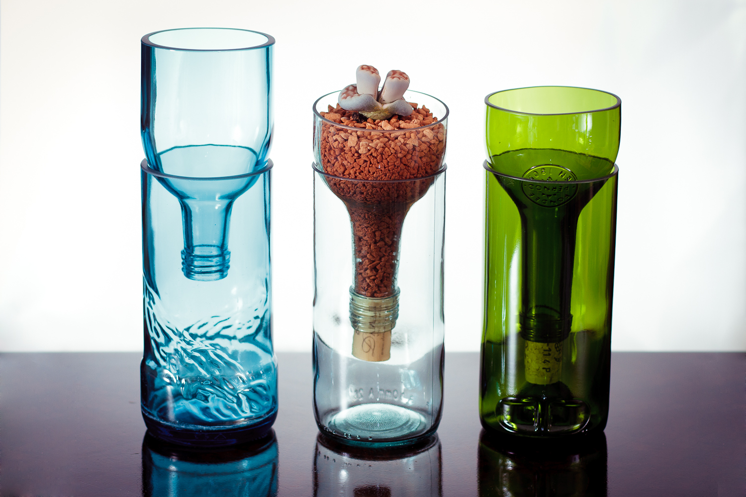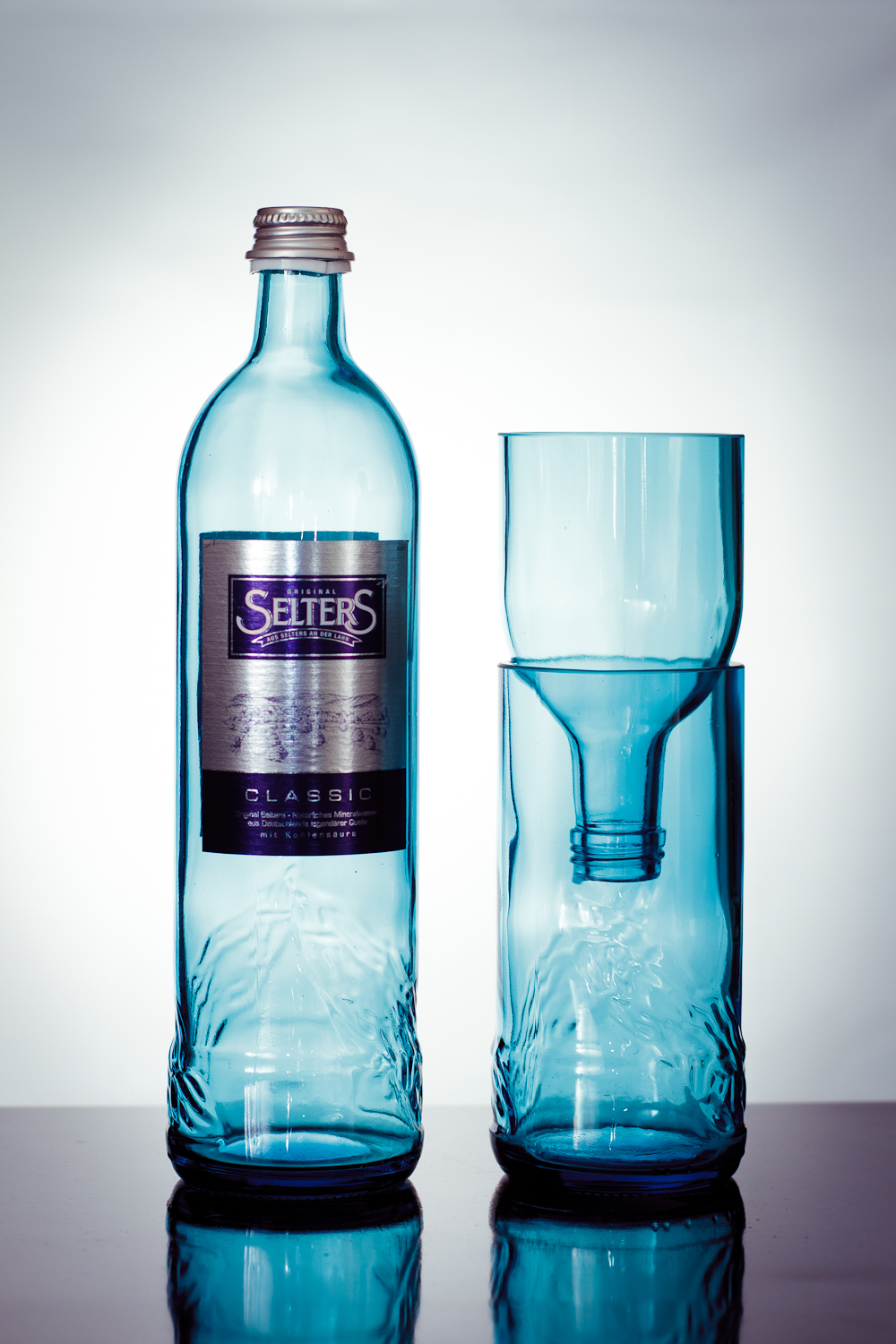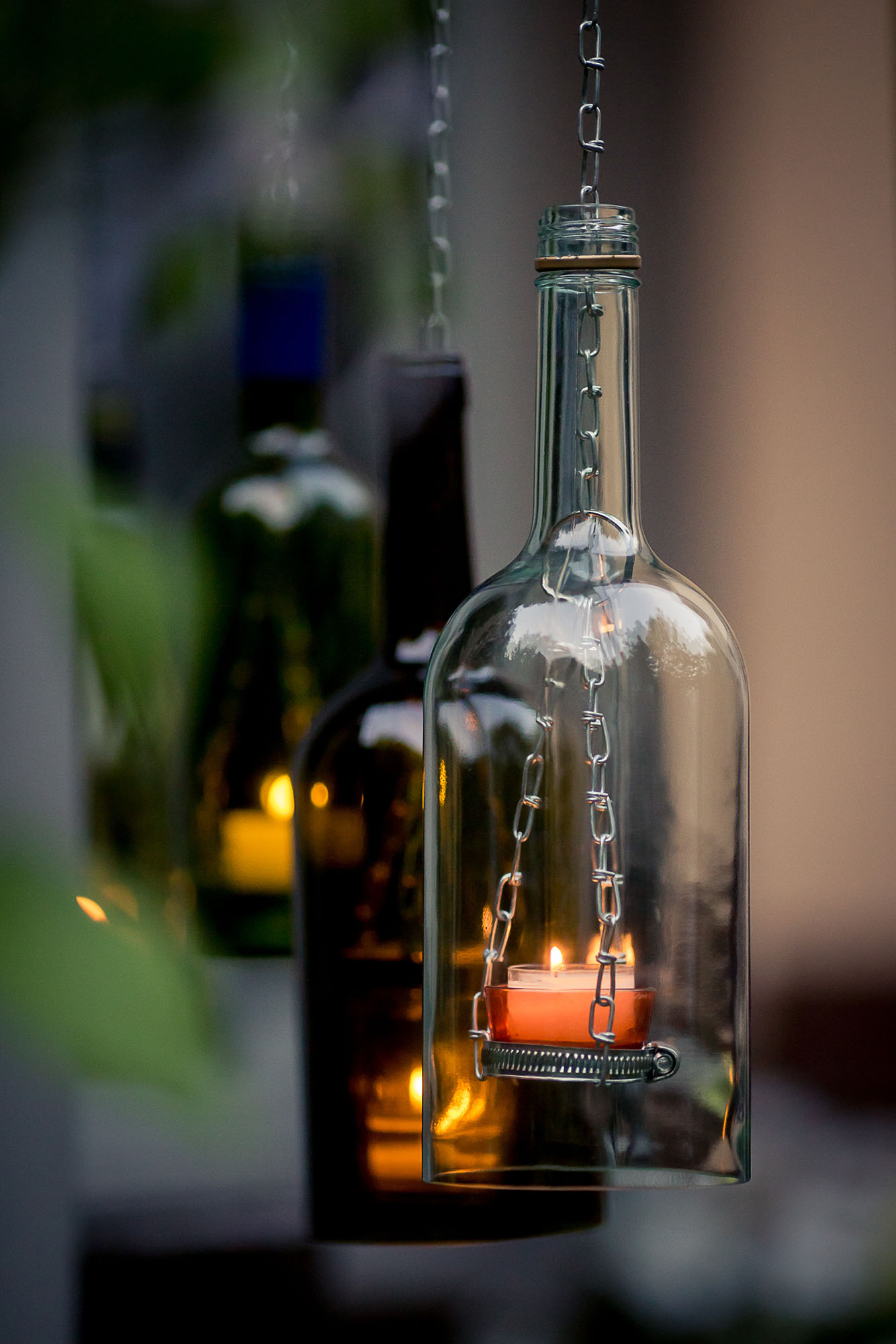 Mit anderen Worten Micha und Lars reinkarnieren hauptsächlich alte Flaschen und zaubern daraus tolle Gläser, Lampen und Accessoires.